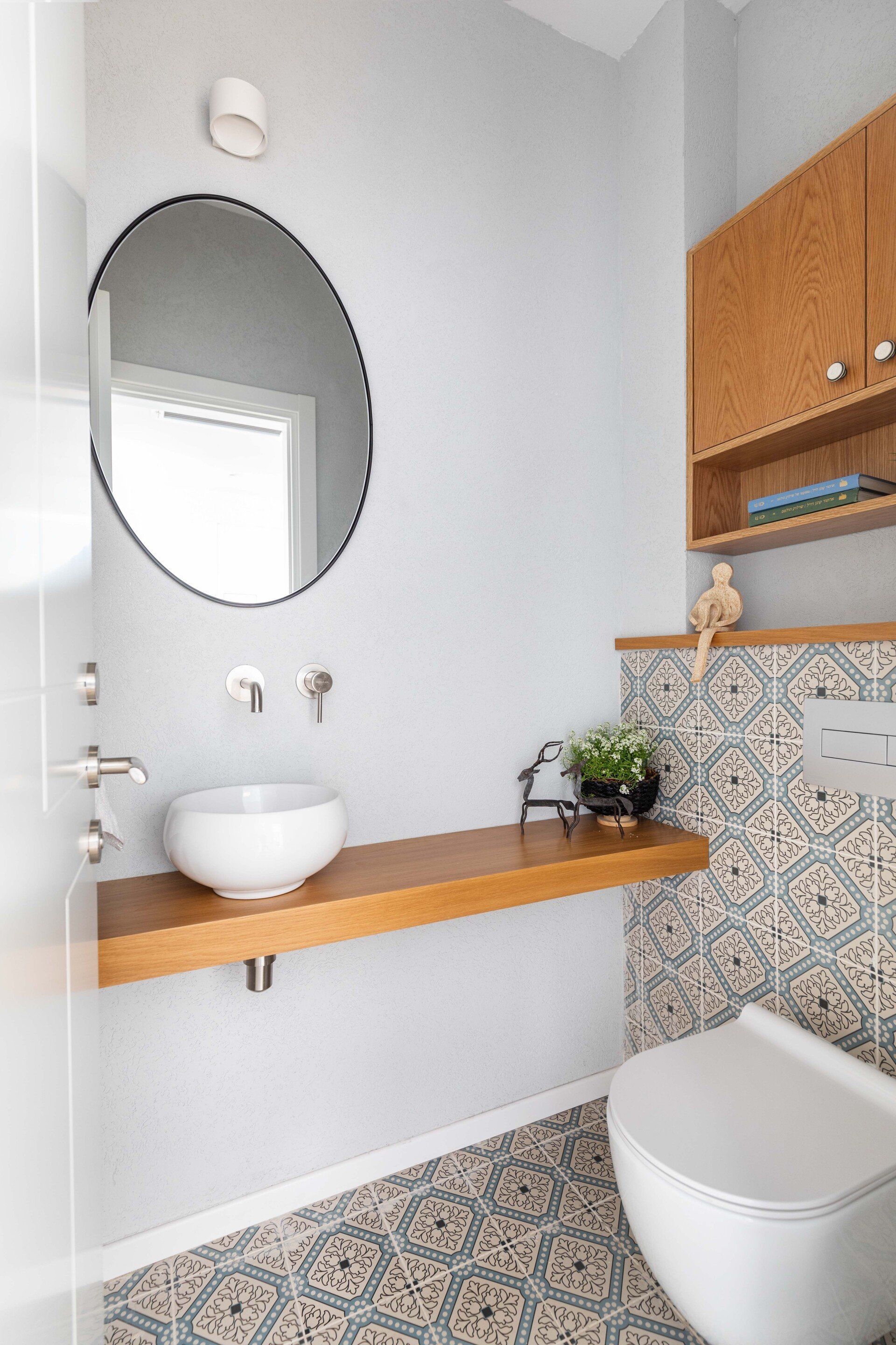 חדר הרחצה בסוויטת ההורים הוגדל ותוכנן בקפידה עפ"י דרישות בני הזוג. פתח היציאה למרפסת חדר השינה הוגדל והאלומיניום הוחלף בפרופיל בלגי שמתחבר לאווירת הצימר בסוויטה. המדרגות חופו בפרקט, המעקה הוחלף והקיר הגבוה בחלל המדרגות נצבע בגוון תכלת ירקרק, צבע אהוב על בעלת הבית. חדרי הילדים בקומת המגורים עוצבו בקפידה, פריטי הריהוט והנגרות תוכננו בהתאמה אישית. חדר הבן המקורי הוסב לחדר משפחה עם אזור לצפייה ומשחקי מסך ובנוסף לפינת עבודה עם ספריה ויח' אחסון מעל.